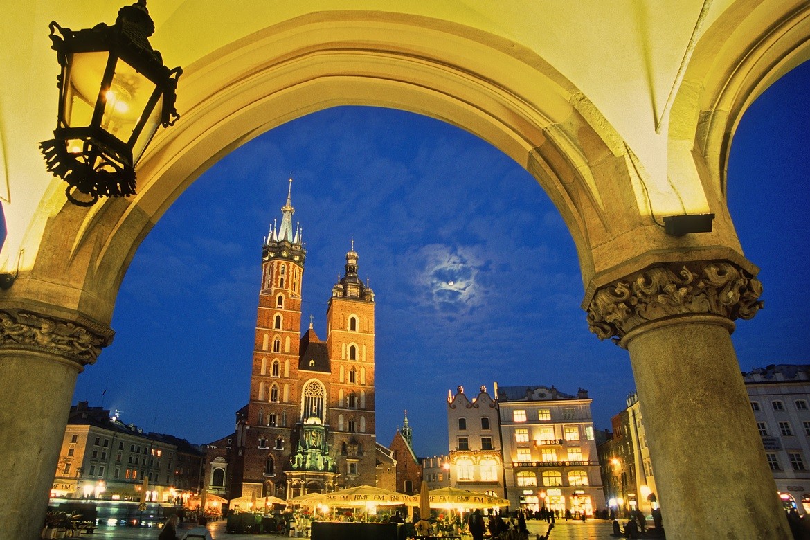 穿过克拉科夫瓮城(Barbakan Krakowski)和弗洛里安门 (Brama Floriańska),你便置身于一个完全不同的世界——在战争的动荡中幸存下来的克拉科夫老城。在这里,每一栋房子都散发着优雅独特的气息,对游人讲述着自己几个世纪的历史。早早就营业的花摊并肩排列在在老城的主广场上,微风吹过还带着新鲜露水的气息,睡眼朦胧的马儿在鹅卵石上轻踏,也许像康斯坦第·加钦斯基 (Konstanty Gałczyński) 的诗中所说的那样,连马儿也被这美景迷住了。鸽子在圣玛丽大教堂 (Bazylika Mariacka) 和纺织会馆 (Sukiennice) 上空盘旋。会馆内的交易仍然像几个世纪前一样繁荣,只不过代替布匹的是:琥珀和白银制成的手工艺品、地区特色服饰还有精美旅行纪念品。纺织会馆一楼有19世纪波兰的艺术画廊,在这里你可以欣赏著名画家瓦迪斯瓦夫·波德科温斯基 (Władysław Podkowiński)、杨·马泰伊科 (Jan Matejko)、约瑟夫·海乌姆尼斯基 (Józef Chełmoński) 和亨利克·谢米拉兹基 (Henryk Siemiradzki) 的名画。纺织会馆中还隐藏着老城广场地下博物馆的入口,在地下博物馆你可以看到1000年前城市的开端。