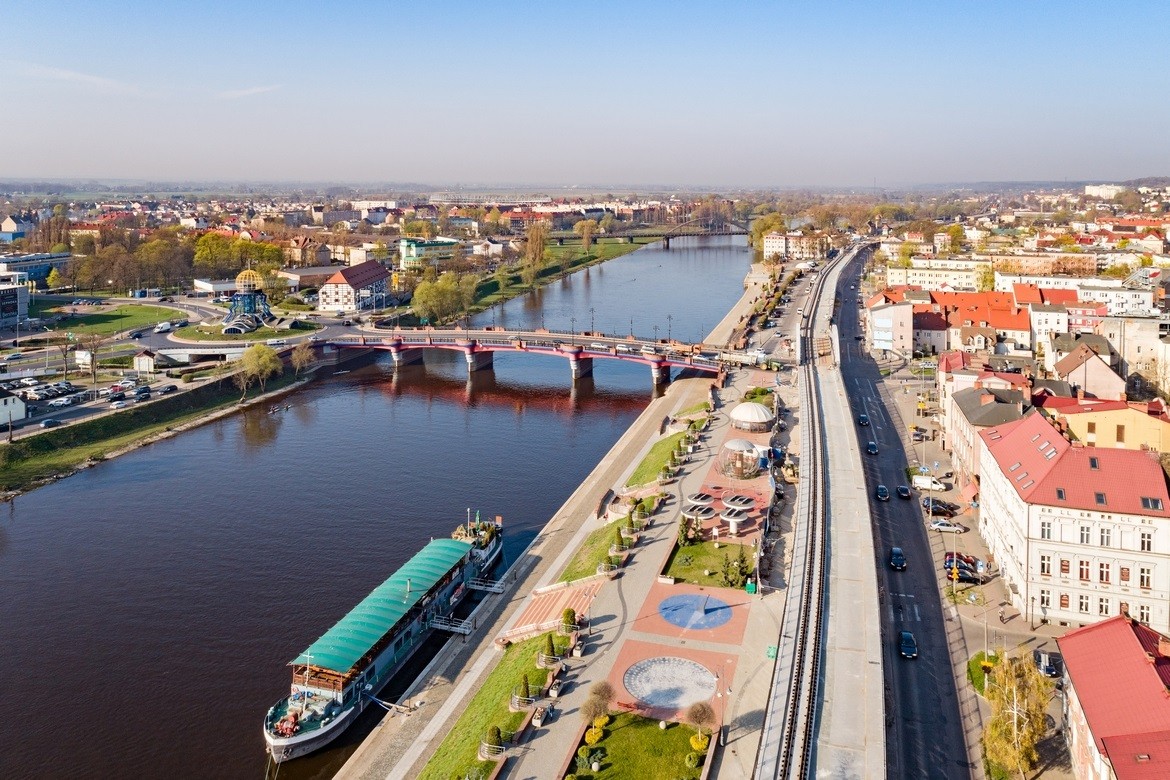 戈茹夫是卢布斯卡省的另一个省会(仅次于绿山城Zielona Góra),从无人机的角度看,戈茹夫最吸引人的地方是瓦尔塔河滨大道。这片绿色区域只有一条名为赫罗布莱格大道(ul. Chrobrego)的街道穿过,波兰历史上最长的铁路立交桥把这片绿色区域和城市的喧嚣划分开来。盆栽棕榈树装点了夏日的街道,尽显热带风情。河风吹来爵士乐和老式管风琴的悦耳声音,那是戈茹夫街头艺术家们在表演。街头小吃散发出的香气更是令人。与城市的航海传统保持一致,到访永久停泊在码头的雅德维加女王(Królowa Jadwiga)游船咖啡馆是很好的选择。此外,您还可以乘坐波兰最古老的破冰船,拥有135年历史的库纳(Kuna)号进行河流之旅。