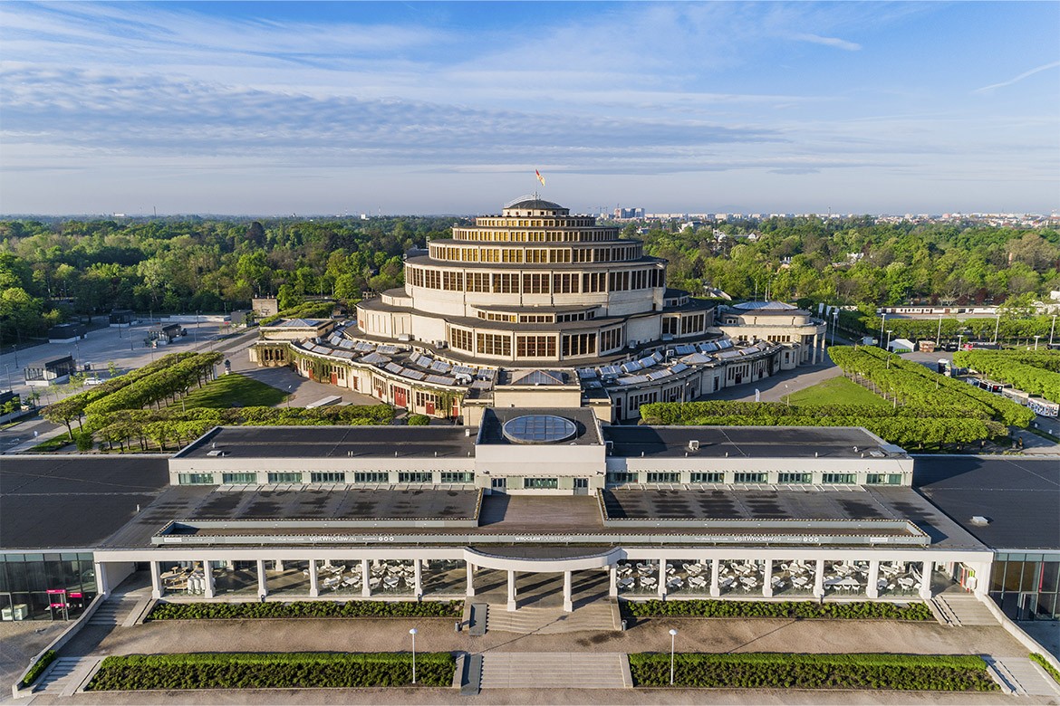 巨大的钢筋混凝土建筑百年纪念厅(Hala Stulecia)是20世纪最重要的地标性建筑之一,这个高23米的灯笼式穹顶式由钢筋和玻璃构成,墙壁造型独特,壁上简洁无饰,水泥暴露在外却不失典雅气息,2006年该建筑被联合国教科文组织列入世界文化遗产名录。百年纪念厅前面的喷泉不仅是波兰最大的喷泉,也是欧洲最大的喷泉之一,它有300个喷水点,夜晚被多达800个智能控制的灯光所照亮,场面非常壮观。