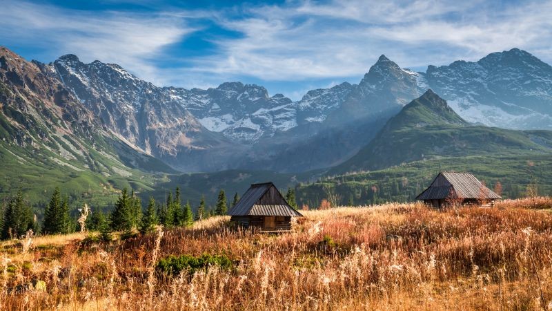 在波兰境内,塔特拉山国家公园环抱并保护整个塔特拉山(最高峰为海拔 2499 米的雷塞峰),并且是波兰唯一具有高山特征的地区。参差不齐的花岗岩山脊、树木丛生的斜坡、冰期后洼地、山地湖泊、无数山洞和风景优美的山谷以及湍急的山溪营造出波兰最美的景观之一。山麓(海拔高达 1200 米)上主要是混合冷杉、落叶松、山毛榉和悬铃木的云杉林。高地(海拔高达 1550 米)覆盖云杉以及少数石松。中欧山松(海拔高达 1800 米)被高山草地和牧场替代,但海拔 2300 米以上主要是悬崖和山峰。塔特拉山富含本土高山植物和高山哺乳动物(例如土拨鼠和岩羚羊),以及少量熊。塔特拉山是波兰最后几个鹫保护区之一。该公园被联合国科教文组织评为世界生物圈保护区。