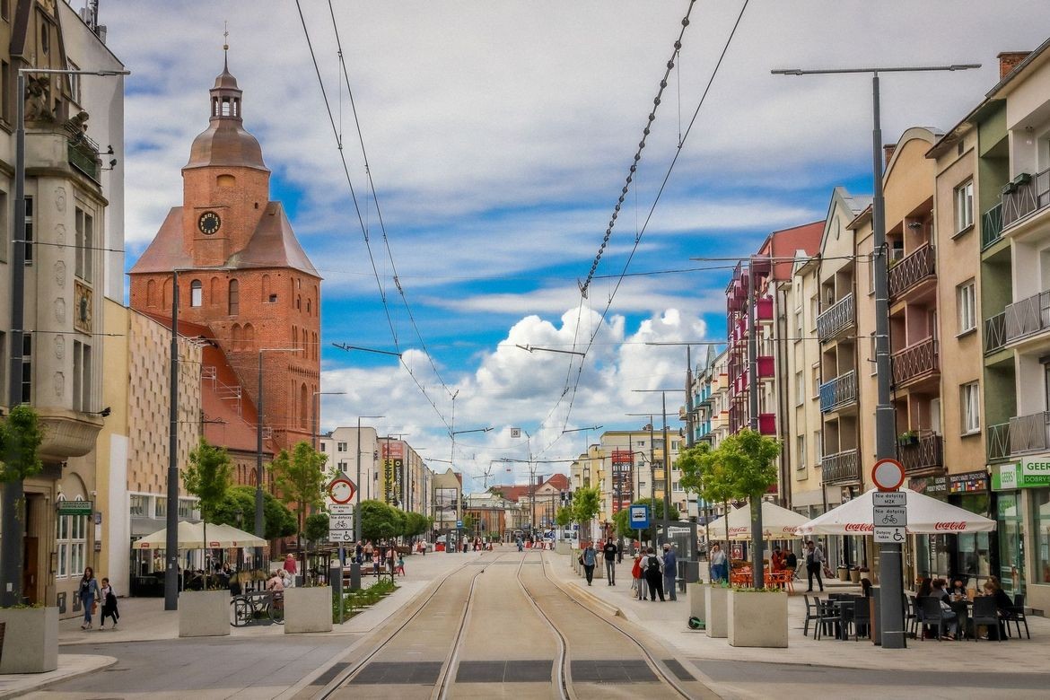 戈茹夫是卢布斯卡省的另一个省会(仅次于绿山城Zielona Góra),从无人机的角度看,戈茹夫最吸引人的地方是瓦尔塔河滨大道。这片绿色区域只有一条名为赫罗布莱格大道(ul. Chrobrego)的街道穿过,波兰历史上最长的铁路立交桥把这片绿色区域和城市的喧嚣划分开来。盆栽棕榈树装点了夏日的街道,尽显热带风情。河风吹来爵士乐和老式管风琴的悦耳声音,那是戈茹夫街头艺术家们在表演。街头小吃散发出的香气更是令人。与城市的航海传统保持一致,到访永久停泊在码头的雅德维加女王(Królowa Jadwiga)游船咖啡馆是很好的选择。此外,您还可以乘坐波兰最古老的破冰船,拥有135年历史的库纳(Kuna)号进行河流之旅。
